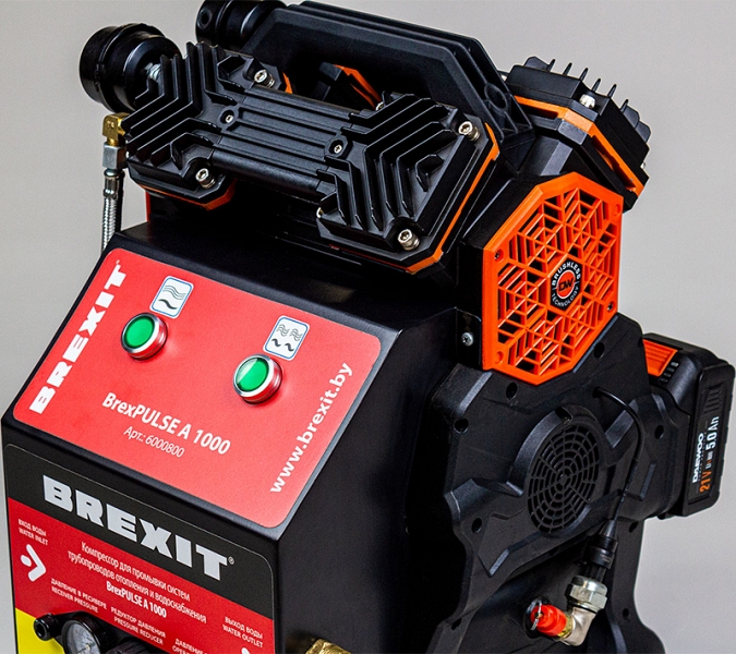 Аккумуляторный компрессор для промывки системы отопления Brexit BrexPulse A1000 (Брекзит БрекзПульс А1000) предназначен для эффективной промывки трубопроводов многоквартирных домов, питьевых и отопительных водопроводов, систем обогрева пола, радиаторов, дезинфекции систем питьевого водоснабжения (реализация данной функции требует применения редуктора и инжектора, поставляемых отдельно), защиты от налета и коррозии.