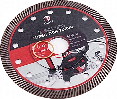 Алмазный диск Diam Extra Line Turbo Super Thin 125 мм (Диам Экстра Лайн Турбо Супер Тин 125 мм) – специальный алмазный круг для сухой и мокрой резки керамики (керамической глазурованной плитки), керамогранита, мрамора, кварца, на ручном электроинструменте и системах раскроя крупного формата.