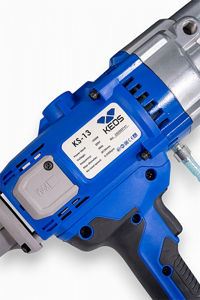 Дрель для алмазного сверления Keos KS-13 (Кеос КС-13) предназначена для бурения отверстий Ø до 130 мм в бетоне, железобетоне (армированном бетоне), камне, кирпиче, асфальте и других строительных и отделочных твердых материалах, с подачей воды, как в ручном режиме, так и с применением стойки (штатива). Идеально подходит для общестроительных работ, отделки, электромонтажа, монтажа сантехники, вентиляции, сплит-систем и многого другого.
