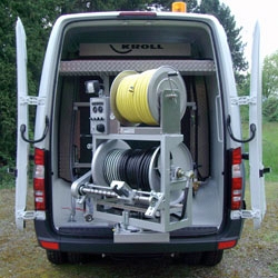 - Монтаж и демонтаж в различные типы автомобилей. Пользователь может самостоятельно выбрать автомобиль типа "Газель", ЗИЛ "Бычок" или прицеп, в который будет установлена каналопромывочная установка для прочистки труб водой под высоким давлением. Благодаря рамной конструкции каналопромывочную установку в любое время можно переустановить на другой автомобиль. Собственный двигатель обеспечивает независимость от двигателя автомобиля, небольшие расходы на техническое обслуживание, четкое разделение гарантийных обязательств на каналопромывочную установку и автомобиль