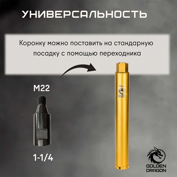 Преимущества коронки алмазной по бетону Golden Dragon М22 51/370 мм: