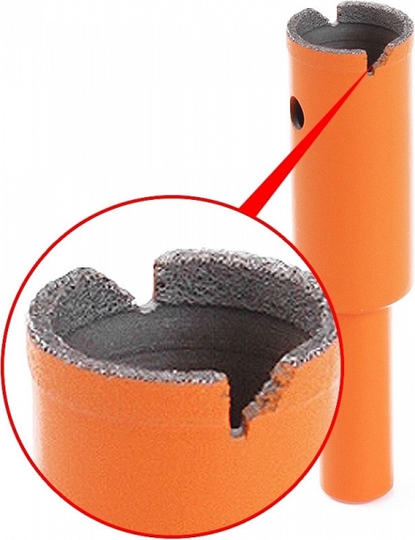 - Сравнительно тонкая режущая кромка позволяет бурить керамогранит очень быстро и не допускает сколов или надломов даже при работе на краю обрабатываемого материала