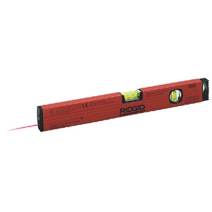 Модель снята с производства! Лазерный уровень Ridgid 385 (Риджид 385) со штампованным алюминиевым профилем, прочными высокоточными акриловыми жидкостными ампулами и фрезерованной измерительной поверхностью.