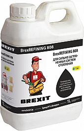 Реагент для промывки системы отопления Brexit BrexRefining 808 (Брекзит БрекзРифайнинг 808) – концентрированный щелочной коррозионно не активный реагент, разработанный для удаления окислов металлов, минеральных отложений и шлама, предназначенный для систем отопления, работающих на воде, сервисное обслуживание которых не проводилось более 3-х лет; профессиональное химическое средство для очистки инженерных систем, контура теплого пола от накипи, ржавчины, известкового налета, отложений магнетита и гидроксида железа и грязи; восстановления теплообмена и нормальной работы сильно загрязненных систем отопления, сервисное обслуживание которых не проводилось более 3-х лет.