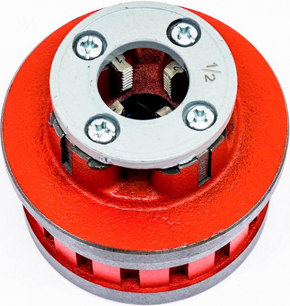 Резьбонарезная головка для ручного клуппа Kern BSPT R HSS 1/2" (Керн БСПТ Р ХСС 1/2") предназначена для нарезания правой конической трубной резьбы BSPT R на стальных трубах Ø 1/2" с помощью ручных резьбонарезных клуппов Kern, а также других производителей.