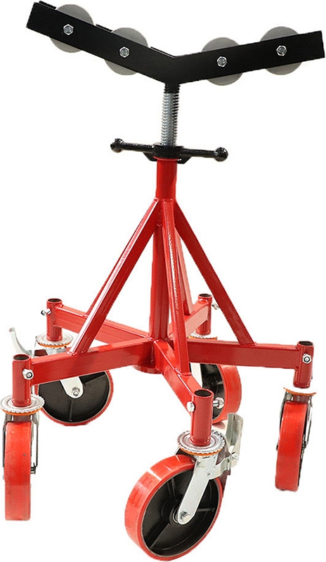 V-образная регулируемая роликовая трубная опора на колесах Rotorica 4-36 (Роторика 4-36) предназначена для работы с трубами Ø 108 – 975 мм (4" – 36"). Широко используется при сварке тяжелых, фасонных, твердых и круглых труб; для поддержки труб во время накатывания желобков, нарезания резьбы, резки, снятия фаски, вырезания отверстий и т.д.
