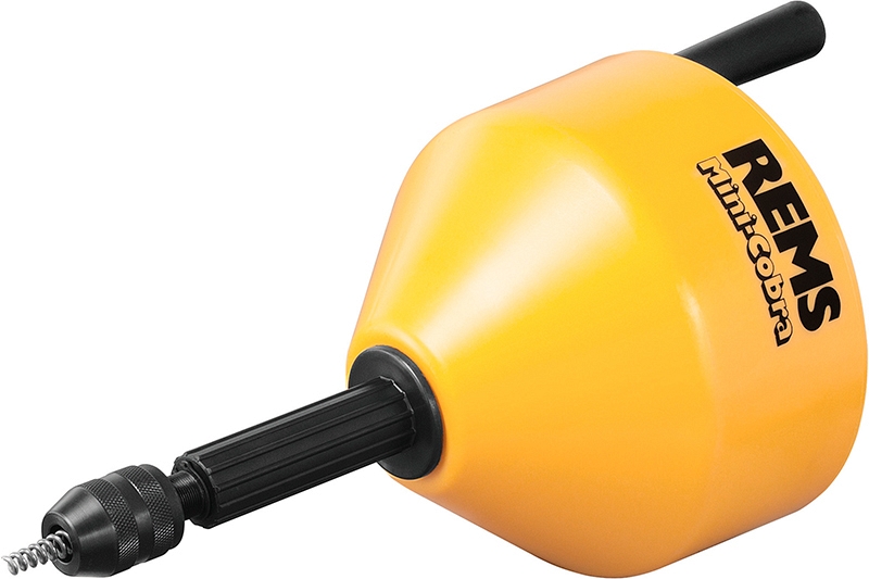 - Rems Мини-Кобра. Устройство для очистки труб Ø 20 – 50 (75) мм, с приводной рукояткой и 6-гранным поводком для дрели. Для спиралей для чистки труб Ø 6, 8 и 10 мм. Барабан для спиралей изготовлен из ударопрочной, укрепленной стекловолокном пластмассы. Быстрозажимной патрон. Спираль Ø 8 мм , длина 7,5 м. В коробке.